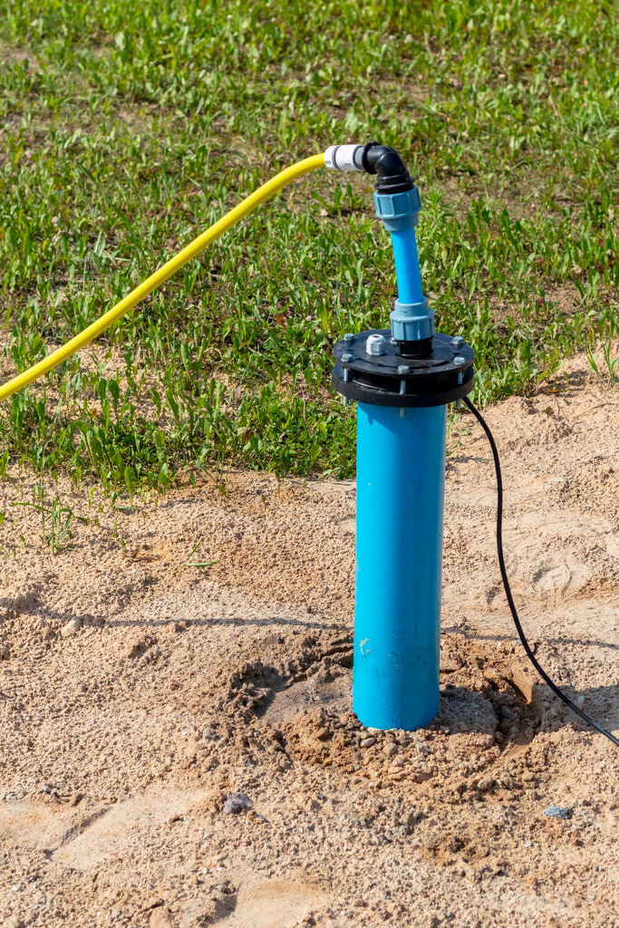 Introducerea pompei submersibile si efectuarea testelor de pompare pentru determinarea parametrilor hidrogeologici ai acviferului si stabilirea debitului optim de exploatare precum si adancimea de imersie a pompei submersibile finale.